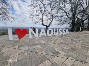 Το «I LOVE NAOUSSA» είναι το μότο της μεγάλης επιγραφής στο πλακόστρωτο του δημοτικού πάρκου Νάουσας και καλεί άπαντες να αγαπήσουν την πόλη, να.
