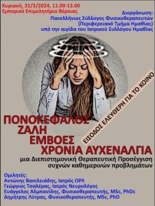 Το ΠΤ Ημαθίας του Πανελληνίου συλλόγου φυσικοθεραπευτών διοργανώνει ημερίδα την Κυριακή 31/03/2024 στις 11:00 π.μ. στο Επιμελητήριο Ημαθίας, στη.