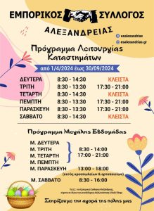 ΤΟ ΘΕΡΙΝΟ ΠΡΟΓΡΑΜΜΑ ΛΕΙΤΟΥΡΓΙΑΣ 2024 ΤΩΝ ΚΑΤΑΣΤΗΜΑΤΩΝ ΣΤΗΝ ΑΛΕΞΑΝΔΡΕΙΑ