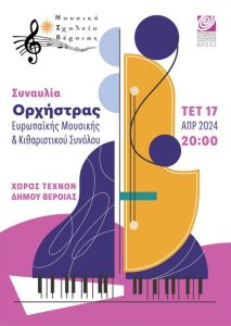 Συναυλία στον Χώρο Τεχνών θα δώσει η Ορχήστρα Ευρωπαϊκής Μουσικής και το Κιθαριστικό Σύνολο του Μουσικού Σχολείου Βέροιας, την Τετάρτη 17..