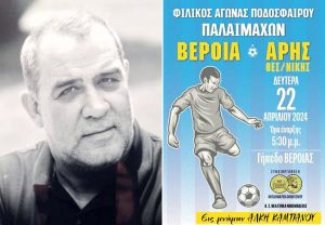 Ο Σύλλογος Παλαιμάχων Ποδοσφαιριστών ΓΑΣ & ΠΑΕ Βέροια, ανακοίνωσε ότι την παρουσίαση του φιλικού αγώνα της Δευτέρας (22/4) μεταξύ Παλαιμάχων..