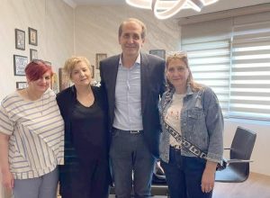 Με την Πρόεδρο του Σωματείου των σχολικών κυλικείων της Ημαθίας, κα Άννα Βασιλειάδου, την γραμματέα κα Ελισάβετ Κόμνη και την Ταμία κα Άννα.