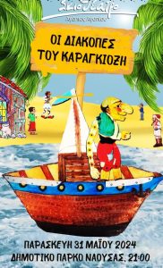 Στο πλαίσιο της 15ης Ανθοκομικής Έκθεσης, ο Δήμος Η.Π. Νάουσας διοργανώνει παράσταση θεάτρου σκιών «Οι Διακοπές του Καραγκιόζη» από το…