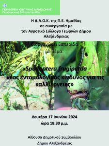 Η Διεύθυνση Αγροτικής Οικονομίας και Κτηνιατρικής της Περιφερειακής Ενότητας Ημαθίας σε συνεργασία με τον Αγροτικό Σύλλογο Γεωργών Δήμου