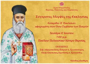 Στο πλαίσιο των «Λ’ Παυλείων» τη Δευτέρα 17 Ιουνίου στις 7:00 μ.μ. στο Παύλειο Πολιτιστικό Κέντρο Βεροίας (πλησίον Βήματος Απ. Παύλου) θα…