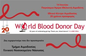 Η εθελοντική αιμοδοσία είναι μια πράξη αγάπης, αλληλεγγύης και ανθρωπιάς. Μια επιλογή που έχει τη δύναμη να σώσει ζωές. Μια πηγαία πράξη…