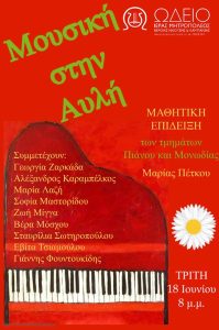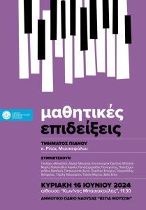 Την ετήσια μαθητική επίδειξη του τμήματος πιάνου της καθηγήτριας Ρίτας Μισοκεφάλου, παρουσιάζει το Δημοτικό Ωδείο Νάουσας «Εστία Μουσών»,