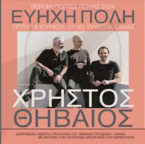 Εκδήλωση – μουσική συναυλία με τον Χρήστο Θηβαίο θα πραγματοποιηθεί με αφορμή την Παγκόσμια Ημέρα κατά των Ναρκωτικών σε συνεργασία με…