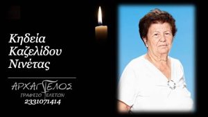 Έφυγε από τη ζωή και κηδεύτηκε σήμερα Παρασκευή 19 Ιουλίου 2024 στις 9.30 π.μ. από τον Ιερό Ναό Αγίας Παρασκευής στην Βεργίνα Ημαθίας η Νινέτα…