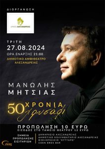 Μια κιβωτός τραγούδια… μιας ζωής χρυσάφι,μια σπουδαία διαδρομή σε μια μοναδική βραδιά στο Δημοτικό Αμφιθέατρο Αλεξάνδρειας.Ο Μανώλης…