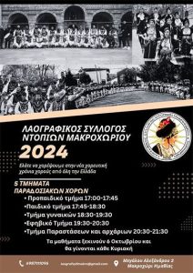 Με χαρά και ενθουσιασμό σας ανακοινώνουμε την έναρξη της νέας χορευτικής χρονιάς στον Λαογραφικό Σύλλογο Ντόπιων Μακροχωρίου και…
