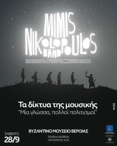 Βέροιας Σάββατο 28 Σεπτεμβρίου | 20:30 ένα μουσικό ταξίδι από τη Μimis Nikolopoulos BandΣτο πλαίσιο της συμμετοχής της Εφορείας Αρχαιοτήτων Ημαθίας στις