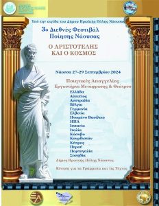 35 ποιητές από 16 χώρες του κόσμου και 5 ηπείρους θα προσέλθουν στο 3ο Διεθνές Φεστιβάλ Ποίησης Νάουσας “Ο Αριστοτέλης και ο κόσμος”, υπό την..