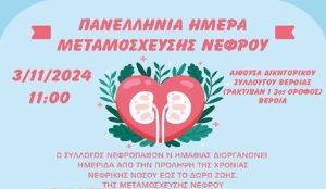 Σύλλογος Νεφροπαθών Ν. Ημαθίας: Ημερίδα για την Πανελλήνια ημέρα μεταμόσχευσης νεφρού την Κυριακή 3 Νοεμβρίου