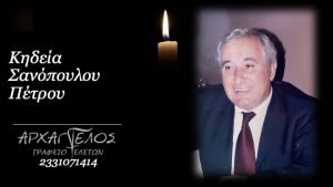 Έφυγε από τη ζωή και κηδεύεται την Κυριακή 3 Νοεμβρίου 2024 στις 11.30 π.μ. από τον Ιερό Ναό Αγίων Αναργύρων Βέροιας ο Πέτρος Σανόπουλος σε ηλικία