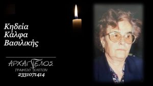 Έφυγε από τη ζωή και κηδεύεται την Τετάρτη 6 Νοεμβρίου 2024 στις 10.30 π.μ. από τον Ιερό Ναό Αγίου Αθανασίου (κοιμητήρια) Αλεξάνδρειας η Βασιλική..