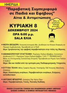 Σήμερα Πέμπτη 5 Δεκεμβρίου 2024 στις 6 το απόγευμα, στο πλαίσιο της «3ης Δεκεμβρίου – Παγκόσμια Ημέρα Ατόμων με Αναπηρία, το Ειδικό Δημοτικό…