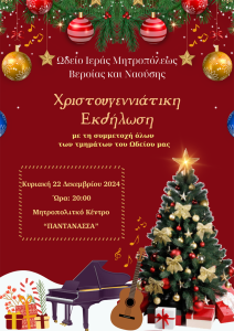 Εκδήλωση του Ωδείου της Ιεράς Μητροπόλεως θα πραγματοποιηθεί την Κυριακή 22 Δεκεμβρίου 2024