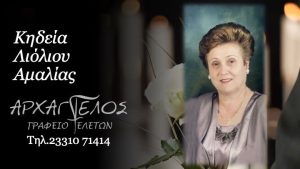 Έφυγε από τη ζωή και κηδεύεται την Πέμπτη 23 Ιανουαρίου 2025 στις 12.00 μ.μ. από τον Ιερό Ναό Αγίου Αθανασίου (Κοιμητήρια) Βέροιας η Αμαλία Λιόλιου