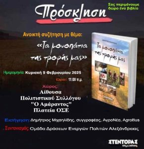 Η Ομάδα Δράσεων Ενεργών Πολιτών ΑΛΕΞΑΝΔΡΕΙΑΣ φιλοξενεί τον συγγραφέα Δημήτρη Μιχαηλίδη σε μια ανοιχτή συζήτηση για το βιβλίο του «Τα…