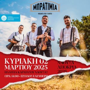 Ο Δήμος Η.Π. Νάουσας στο πλαίσιο των εκδηλώσεων «Νάουσα – Αποκριά 2025» διοργανώνει την Κυριακή 2 Mαρτίου 2025 και ώρα 14:00 στην Πλατεία Καρατάσου..