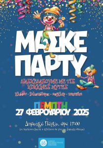 Ο Δήμος Ηρωικής Πόλης Νάουσας στο πλαίσιο των εκδηλώσεων «Νάουσα – Αποκριά 2025» διοργανώνει σήμερα Πέμπτη 27 Φεβρουαρίου και ώρα 17:00 στο…