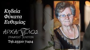 Έφυγε από τη ζωή και κηδεύεται σήμερα Τρίτη 22 Απριλίου 2025 στις 5.30 μ.μ. από τον Ιερό Ναό Αγίου Αθανασίου (Κοιμητήρια) Βέροιας η Ευθυμία Φύκατα.