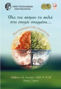Το Λύκειο των Ελληνίδων – Παράρτημα Βέροιας παρουσιάζει τη μουσικοχορευτική παράσταση Όλα του κόσμου τα καλά στις εποχές σπαρμένα… το…