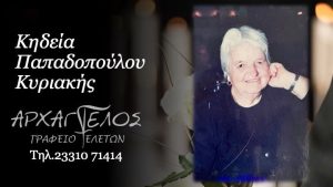 Έφυγε από τη ζωή και κηδεύεται σήμερα Τρίτη 6 Μαΐου 2025 στις 5.30 μ.μ. από τον Ιερό Ναό Αγίου Νικολάου στη Νέα Νικομήδεια η Κυριακή Παπαδοπούλου.