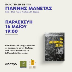 Την Παρασκευή 16 Μαΐου στις 7.00 μ.μ. στην Sala Ελια θα γίνει η παρουσίαση του βιβλίου του Γιάννη Μανέτα “ΤΑ ΔΑΡΒΙΝΙΚΑ ΔΕΙΝΑ”. Η εκδήλωση θα…
