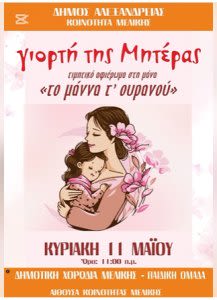 Η χορωδία Μελίκης δίνοντας για άλλη μια φορά το στίγμα της στο “κοινωνικό γίγνεσθαι”, τιμά τη γιορτή της μητέρας μ’ ένα μουσικό δρώμενο…