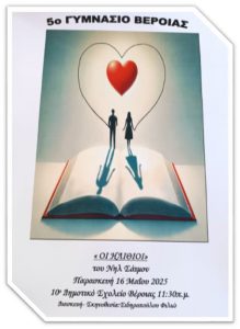 H θεατρική ομάδα του 5ου Γυμνασίου Βέροιας παρουσιάζει την Παρασκευή 16 Μαϊου 2025 στο 10ο Δημοτικό Σχολείο Βέροιας στις 11:30 π.μ. την…