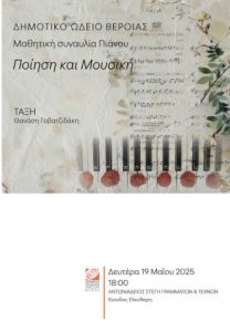 «Ποίηση και μουσική» είναι ο τίτλος της μαθητικής συναυλίας πιάνου του δημοτικού Ωδείου της ΚΕΠΑ Δ. Βέροιας, της τάξης του καθηγητή Θανάση.