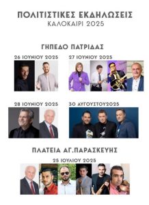 Από τις 26 έως τις 28 Ιουνίου θα πραγματοποιηθούν οι φέτος οι καθιερωμένες καλλιτεχνικές εκδηλώσεις του πολιτιστικού συλλόγου Πατρίδας,…