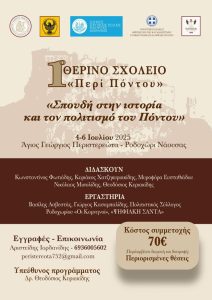 Το Σωματείο Άγιος Γεώργιος Περιστερεώτα διοργανώνει το 1ο ΘΕΡΙΝΟ ΣΧΟΛΕΙΟ με τίτλο «Σπουδή στην ιστορία και τον πολιτισμό του Πόντου» στις 4-6 Ιουλίου 2025