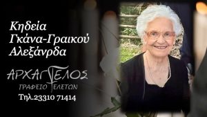 Έφυγε από τη ζωή και κηδεύτηκε σήμερα Σάββατο 12 Ιουλίου 2025 στις 11.00 π.μ. από τον Ιερό Ναό Κοιμήσεως της Θεοτόκου Αλεξάνδρειας Ημαθίας η Γκάνα