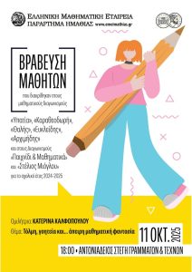 Το Σάββατο 11 Οκτωβρίου: Βράβευση μαθητών που διακρίθηκαν σε διαγωνισμούς της Ελληνικής Μαθηματικής Εταιρείας
