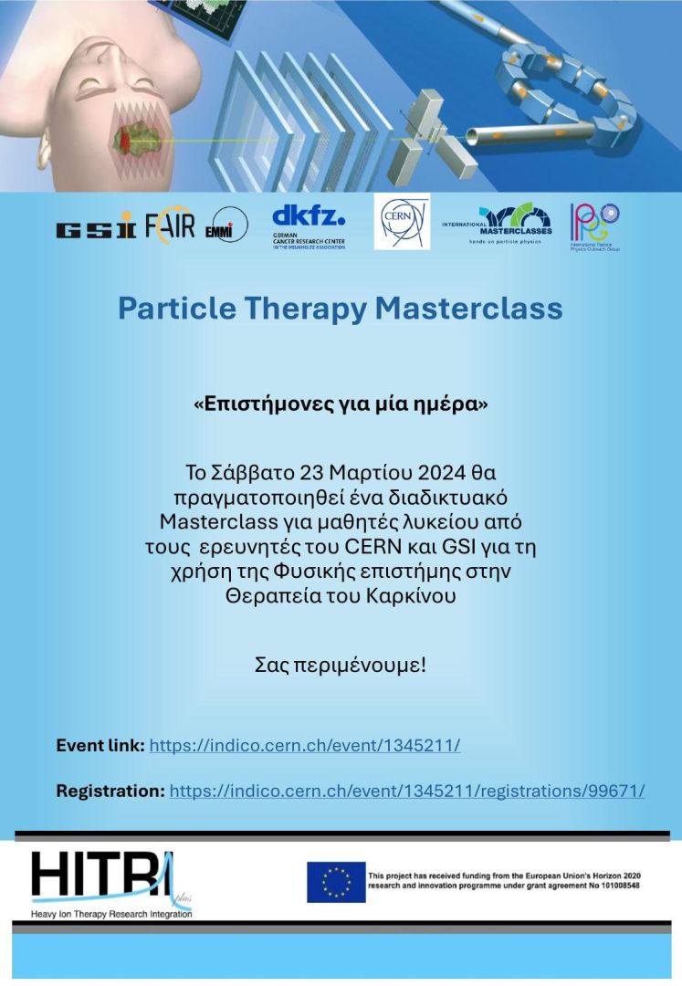 Το Particle Therapy Masterclass, αναπτύχθηκε από το ερευνητικό κέντρο GSI, εντάσσεται στο International Physics Masterclasses https://physicsmasterclasses.org/, μια καθιερωμένη εδώ και χρόνια εκπαιδευτική δραστηριότητα προσέγγισης και ιδιαίτερα σημαντικό έργο του International Particle Physics Outreach Group, IPPOG, https://ippog.org, που διαδίδεται σε όλο τον κόσμο. Τα εγκεκριμένα Masterclasses του προγράμματος, παρουσιάζονται κάθε χρόνο σε περίπου 55 χώρες, με τη συμμετοχή 255 ερευνητικών – επιστημονικών κέντρων και τα παρακολουθούν περίπου 15.000 μαθητές.