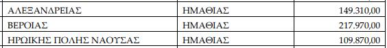 Για τον Νομό Ημαθίας τα ποσά που θα λάβουν οι Δήμοι είναι: