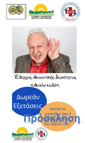 ακουστικής ικανότητας (ωτοσκόπηση) που θα πραγματοποιηθεί από συνεργαζόμενους εθελοντές ΩΡΛ ιατρούς.