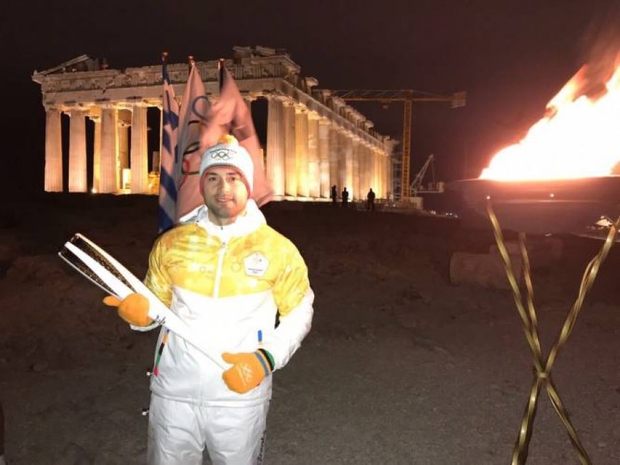 Το βωμό στην Ακρόπολη άναψε ο Ολυμπιονίκης της γυμναστικής Δημοσθένης Ταμπάκος, στην ολοκλήρωση της 7ης ημέρας της Λαμπαδηδρομίας για τους Χειμερινούς Ολυμπιακούς Αγώνες PyeongChang 2018.