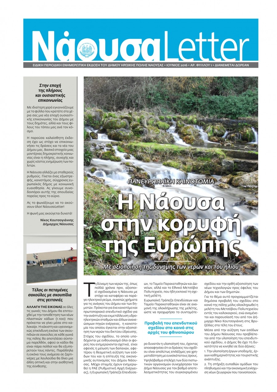 Πολλή κουβέντα στη συνεδρίαση του δημοτικού συμβουλίου Νάουσας της Τετάρτης για το έντυπο Νάουσα-Letter, που κυκλοφόρησε από τον δήμο. Ένα έντυπο με σημαντικό ενημερωτικό ρόλο, ένα εργαλείο για επικοινωνία, που είναι αναγκαία για τα σταθερά βήματα στον δρόμο της προόδου, χαρακτήρισε το τετρασέλιδο έντυπο ο δήμαρχος Νίκος Κουτσογιάννης, λέγοντας ότι έγινε αποδεκτό με χαρά και ανταπόκριση από τον κόσμο.