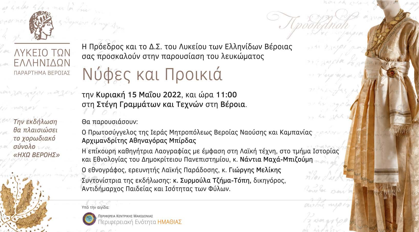 Η Πρόεδρος και το Δ.Σ. του Λυκείου Ελληνίδων Βέροιας σας προσκαλούν