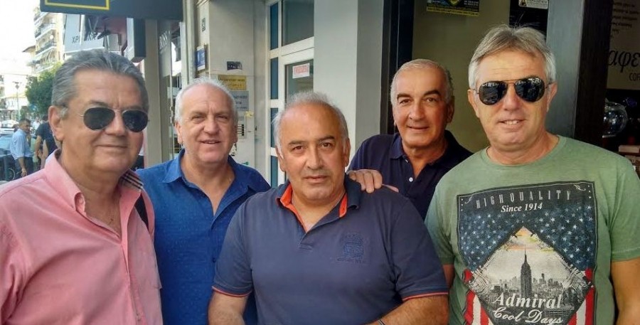 Στη φωτογραφία ο Δημήτρης Μαυρόπουλος με τους παιδικούς του φίλους κ.κ. Μουσένα και Αντωνιάδη και τους Γιώργο Μηνά και Φώτη Καραβασίλη.