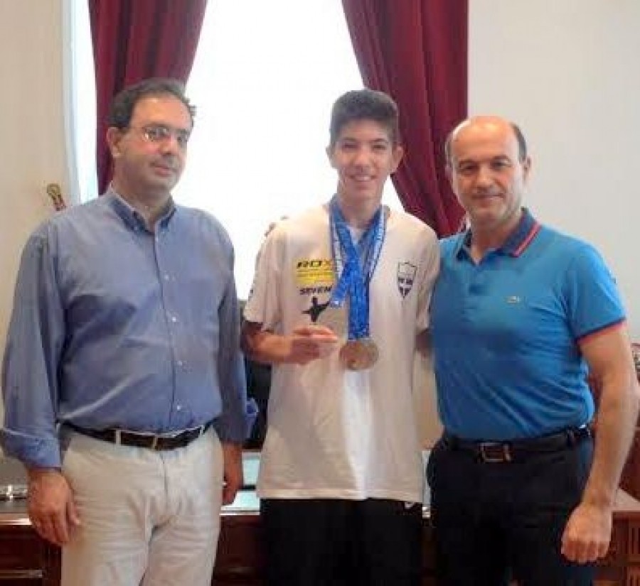 Τον αθλητή του Πανημαθιακού Δημήτρη Πρελορέντζο, που αγωνιζόμενος στο Παγκόσμιο Πρωτάθλημα Καράτε Κωφών και Βαρήκοων κατάκτησε τη 2η θέση στο ατομικό ΚΑΤΑ, την 3η θέση στο ομαδικό ΚΑΤΑ και τη 2η θέση στο ομαδικό ΚΟΥΜΙΤΕ, υποδέχτηκε την Παρασκευή ο δήμαρχος Κώστας Βοργιαζίδης. Ο δήμαρχος συνεχάρη το νεαρό αθλητή και τον προπονητή του Νικό Πανετσίδη, υπογραμμίζοντας πως οι συγκεκριμένες διακρίσεις συνιστούν ιδιαίτερη τιμή για την πόλη και πηγή έμπνευσης για όλους μας, αφού αποτελούν απόδειξη ότι με επιμονή, θέληση και πίστη τίποτα δεν είναι αδύνατο και κάθε στόχος μπορεί να γίνει εφικτός.