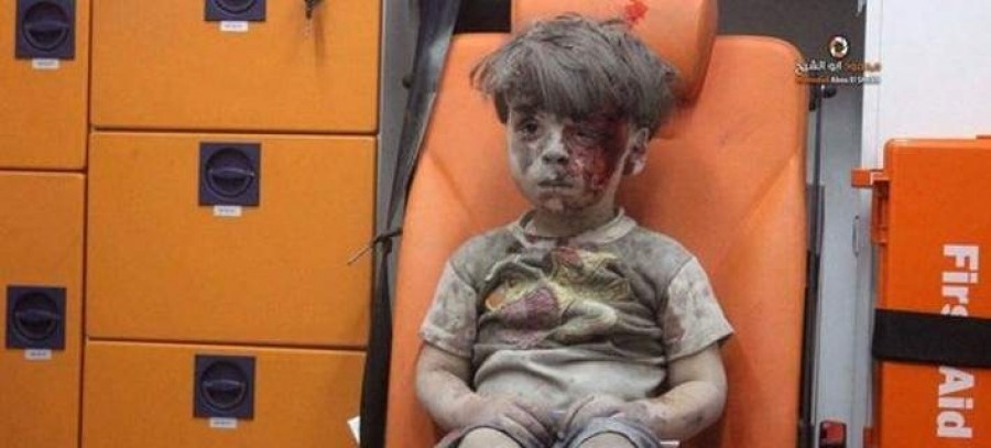 Ένα μικρό παιδί ανασύρεται από τα ερείπια που έχουν αφήσει πίσω τους οι βομβαρδισμοί στο Χαλέπι. Βάζουν τον Ομράν στο ασθενοφόρο. Είναι καλυμμένος με αίματα. Δεν κλαίει, όπως θα περίμενε κανείς. Το σοκ του δεν μπορεί να περιγραφεί με λέξεις. Ο φακός αποτυπώνει το κενό στο βλέμμα του. Αυτό το παγωμένο βλέμμα που φέρει μέσα του τη φρίκη του πολέμου. Δεν κάνει τίποτα άλλο από το να αγγίξει μόνο τα αίματα που καλύπτουν το πρόσωπό του.