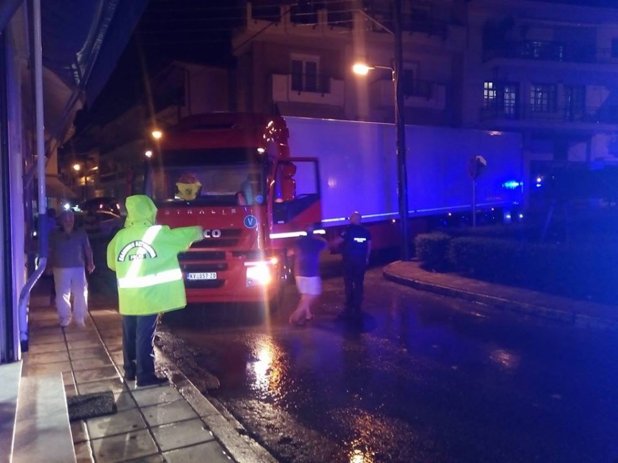 Εγκλωβίστηκε σέρβικη νταλίκα με συρόμενο γύρω στις 9.30 το βράδυ στη νησίδα της περιοχής “Παπάκια” στη Βέροια, αφού προφανώς ο οδηγός μπήκε από λάθος στο κέντρο της πόλης. Άμεσα κινητοποιήθηκε η τροχαία προκειμένου να βοηθήσει τον οδηγό να απεγκλωβίσει το όχημά του.
