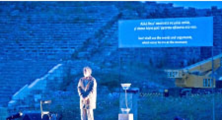 Η παράσταση του πολυβραβευμένου Δήμου Αβδελιώδη, που ξεκίνησε από πέρσι το καλοκαίρι σαν παραγωγή του Κρατικού Θεάτρου Βορείου Ελλάδος και καθήλωσε χιλιάδες θεατές, μετά από sold out παραστάσεις στη Θεσσαλονίκη, σε αρχαιολογικούς χώρους και μουσεία, στο Δημοτικό Θέατρο Πειραιά, στην Ρουμανία, στην Κύπρο και το Βιετνάμ, όπου αποθεώθηκε από το Διεθνές Διπλωματικό Σώμα 27 Πρεσβειών στην ιστορική Όπερα του Ανόι και έγινε παγκόσμιο πολιτιστικό γεγονός αναδεικνύοντας την αρχαία ελληνική γλώσσα σε ζωντανή γλώσσα, για πρώτη φορά ύστερα από δυόμιση χιλιάδες χρόνια, περιοδεύει ανά την Ελλάδα και το εξωτερικό με 60 προγραμματισμένες παραστάσεις, με την στήριξη και υπό την Αιγίδα του ΚΘΒΕ.