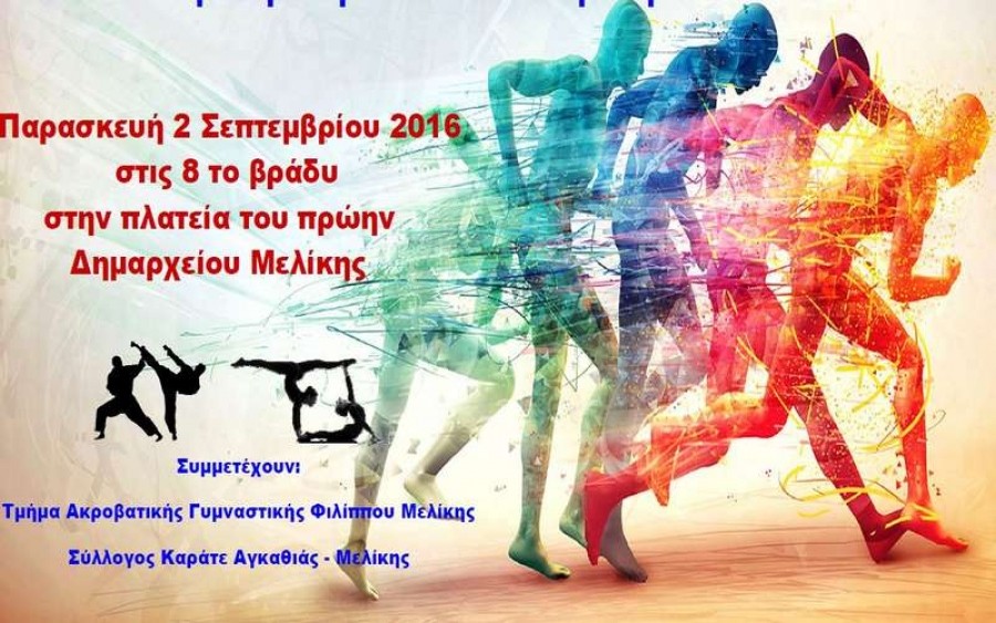 Την εκδήλωση θα ανοίξει το τμήμα Ακροβατικής Γυμναστικής του Φιλίππου Μελίκης και ο Σύλλογος Καράτε Αγκαθιάς – Μελίκης.