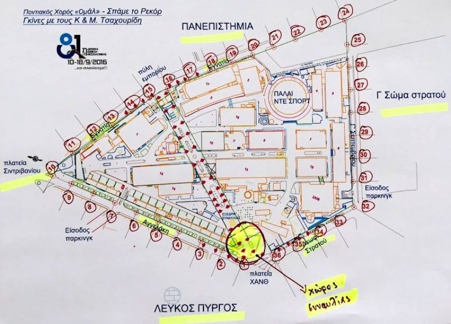 Να κλείσει με χορευτές τον κύκλο γύρω από τη ΔΕΘ στοχεύει η οργάνωση του Ομάλ για το βραβείο Γκίνες (άμεσα και ομαλ-ά, όπως αναφέρει η σχετική ανακοίνωση!), την ερχόμενη Τρίτη (και 13) στην Έκθεση, στο πλαίσιο της συναυλίας των Ματθαίου και Κωνσταντίνου Τσαχουρίδη. Για το λόγο αυτό σχεδιάστηκε ο συγκεκριμένος χάρτης, με συντονιστές σε κάθε ένα από τα 36 σημεία. Όλοι οι συμμετέχοντες στον κύκλο θα έχουν την ευκαιρία να βρεθούν μπροστά στην κάμερα (επίγεια και εναέρια), η οποία θα καταγράφει λεπτό προς λεπτό τον κύκλο πάνω σε όχημα. Το δε Ομάλ θα ξεκινήσει όταν και μόνο κλείσει ο κύκλος (υπολογίζεται στις 11.30 το βράδυ), με όλη την πόλη σχεδόν να ακούει τους αδελφούς Τσαχουρίδη!